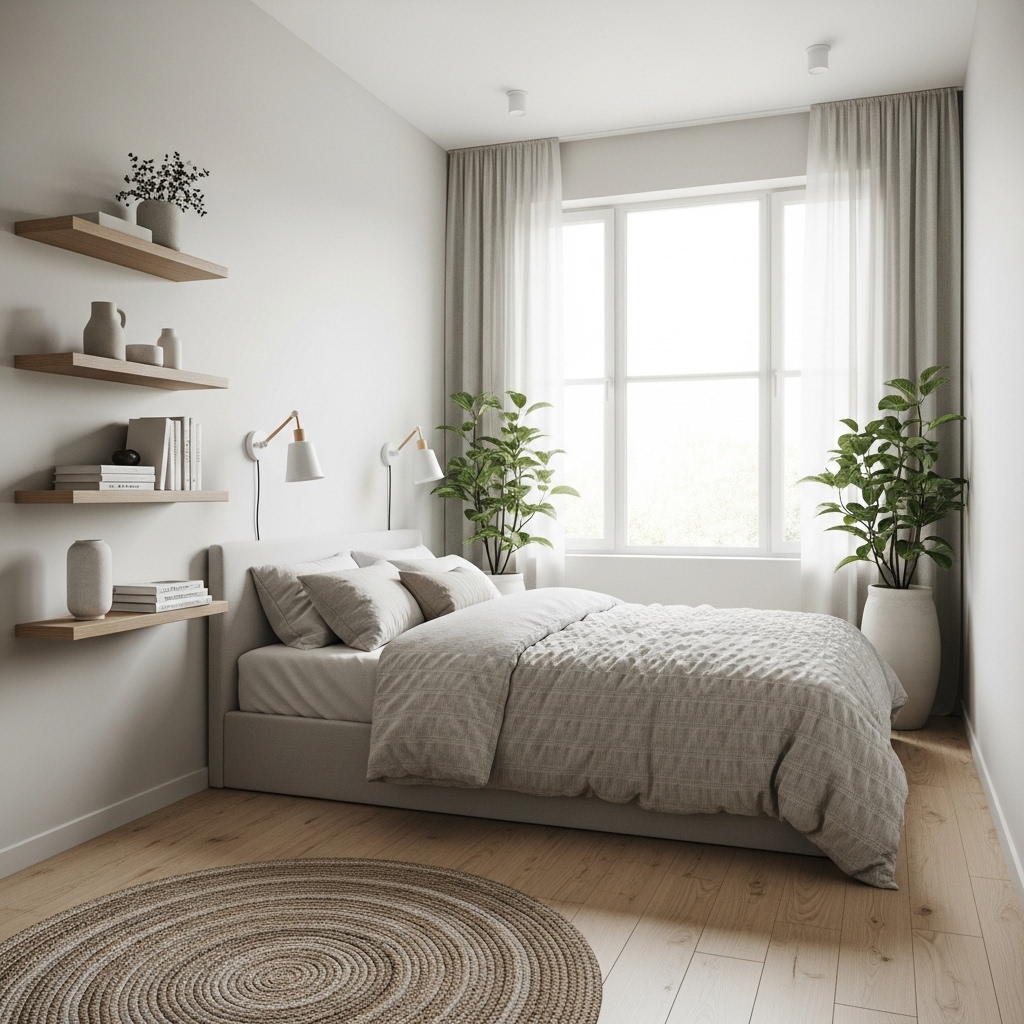 Minimalism doesn’t mean boring—it means being selective and intentional. In a small bedroom, simplifying your decor choices prevents your space from feeling cramped.