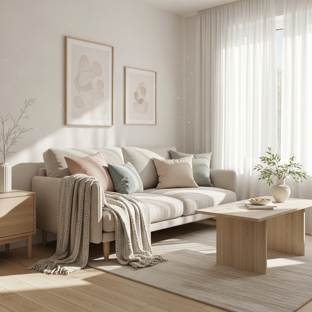 Color plays a huge role in how spacious your home feels. Light, neutral shades like soft beige, off-white, pale gray, and blush can make a room appear bigger and brighter.