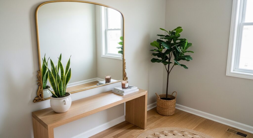 This simple addition can completely transform a room’s atmosphere — especially in narrow hallways or compact living areas.