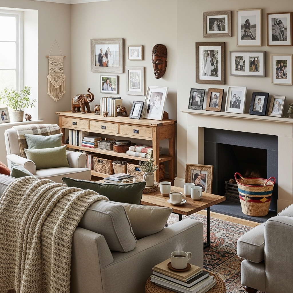 Your walls are prime real estate. Warm neutral living room wall decor doesn’t mean plain—it means purposeful.