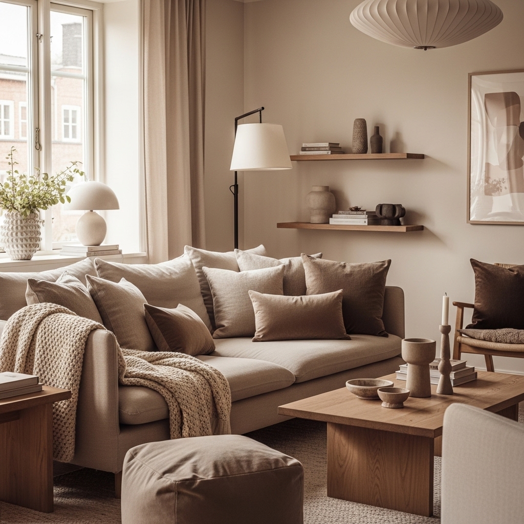 I’ve personally gone through the phase of stark whites and cool grays, and IMO, they look great in photos but not always in real life. Once I started adding warmer tones—think beige, taupe, cream, and soft browns—my living room finally felt livable. So let’s talk, friend-to-friend, about how to nail this look without overthinking it 🙂