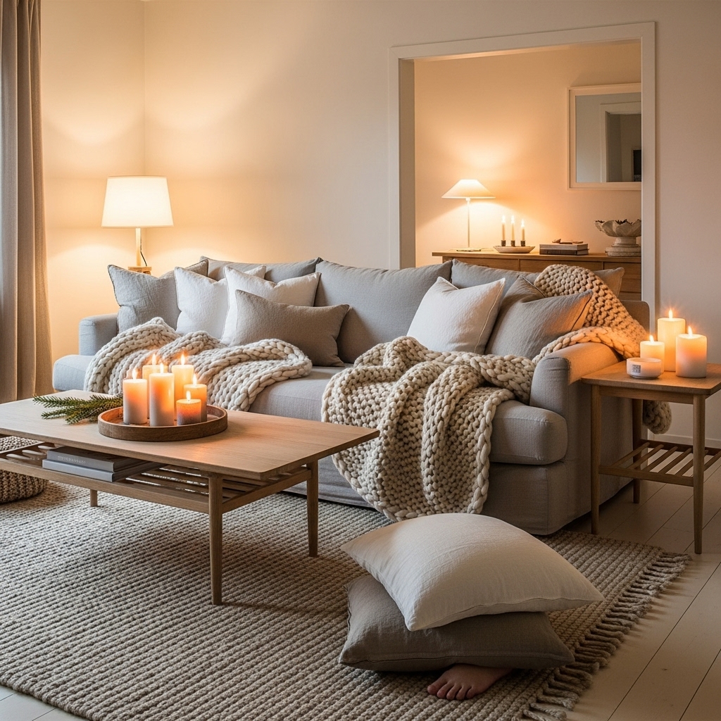 Warm, flickering lights are essential. A collection of candles instantly creates that signature hygge feeling.